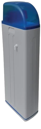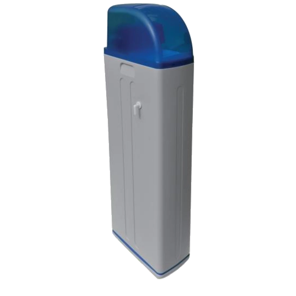 Esztétikus, társainál keskenyebb kabinetben elhelyezett, könnyen tisztítható vízlágyító. A kabinetben található a vezérlőfej, a gyantatartó oszlop, a sófelszívó egység és maga a vízlágyító gyanta.